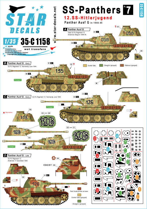 STAR DECALS 35-C1158 - 1:35 SS-Panthers # 7. 12. SS-Hitlerjugend Panther Ausf G.
