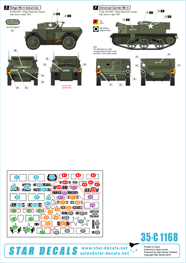 STAR DECALS 35-C1168 - Commonwealth Mix. Korean War 1950-53. Churchill, Jeep, U-Carrier, Cromwell. Dingo SC.
