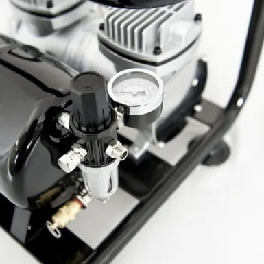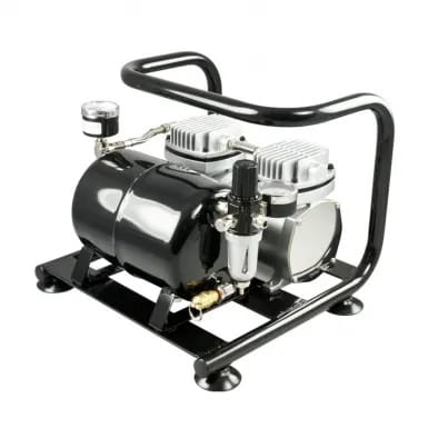 Tłokowy, dwucylindrowy kompresor bezolejowy firmy Sparmax model AC500 do zasilania aerografów. Wyposażony w zbiornik powietrza o pojemności 2,5l. Cicha praca powoduje, że idealnie nadaje się do używania w mieszkaniach i niewielkich warsztatach. Otwarta kontrukcja usprawnia chłodzenie i ułatwia kontrolę stanu podzespołów oraz wskazań manometrów. Kompresor jest wyposażony w odwadniacz z regulatorem ciśnienia i system auto start/stop. W zestawie znajdują się dwa 3m wężyki w oplocie do podłączenia aerografów.