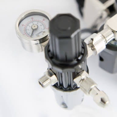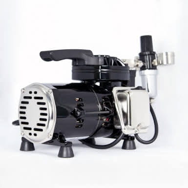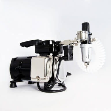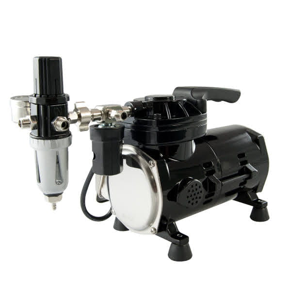 Tłokowy kompresor bezolejowy firmy Sparmax model TC501N do zasilania aerografów. Niewielkie wymiary i cicha praca sprawiają, że idealnie nadaje się do używania w mieszkaniach i niewielkich warsztatach. Wyposażony w odwadniacz z regulatorem ciśnienia i system auto start/stop. W zestawie znajduje się także 2m wężyk w oplocie do aerografu.