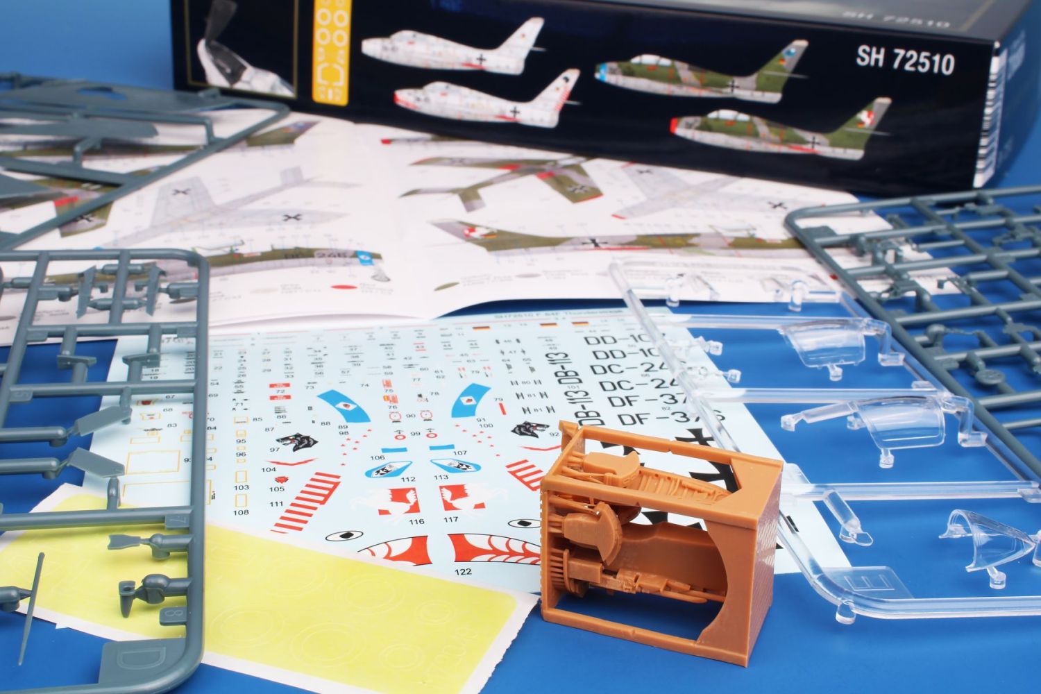 Model samolotu F-84F Thunderstreak w wersji używanej przez niemiecką Luftwaffe w okresie zimnej wojny. Zestaw Hi-Tech firmy Special Hobby w skali 1:72 zawiera dodatkowe elementy fototrawione i żywiczne, co pozwala na wykonanie bardzo realistycznej miniatury z dużą liczbą detali.