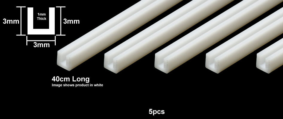 TAMIYA 70207 - Plastic Beams 3mm U-Shaped - Clear 5pcs x 40 cm