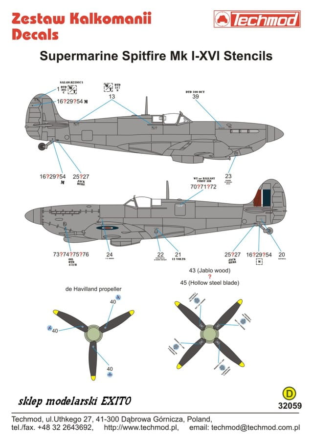 TECHMOD 32059 - 1:32 Supermarine Spitfire Mk.I - XVI Stencils
