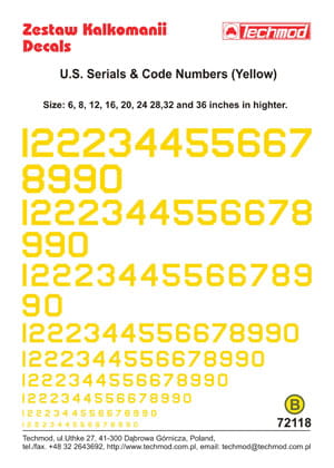 TECHMOD 72118 - 1:72 U.S. Serial & Code Numbers (Yellow)