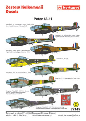 TECHMOD 72145 - 1:72 Potez 63-11 w/canopy mask