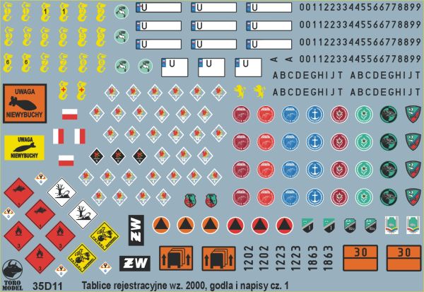 TORO MODEL 35D11 - 1:35 Tablice rejestracyjne wz.2000, godła i napisy eksploatacyjne pojazdów Wojska Polskiego cz.1
