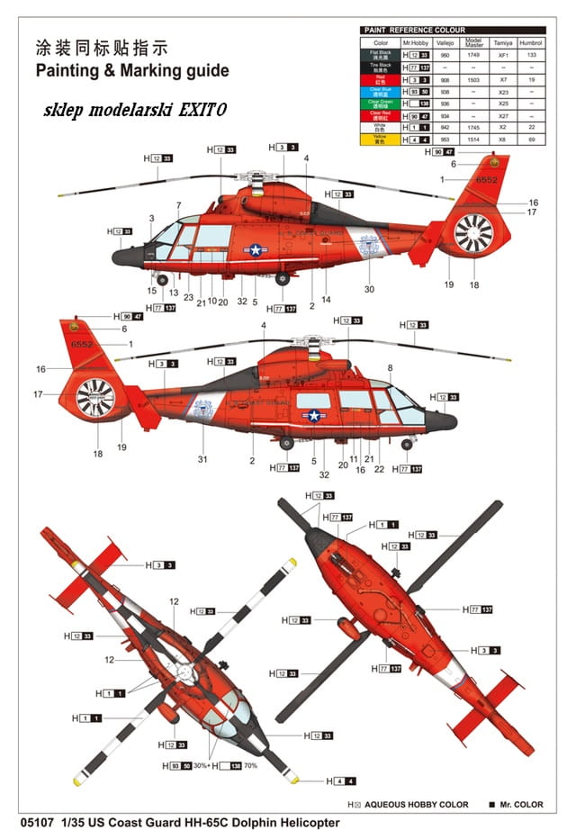 TRUMPETER 05107 - 1:35 US Coast Guard HH-65C Dolphin Helicopter