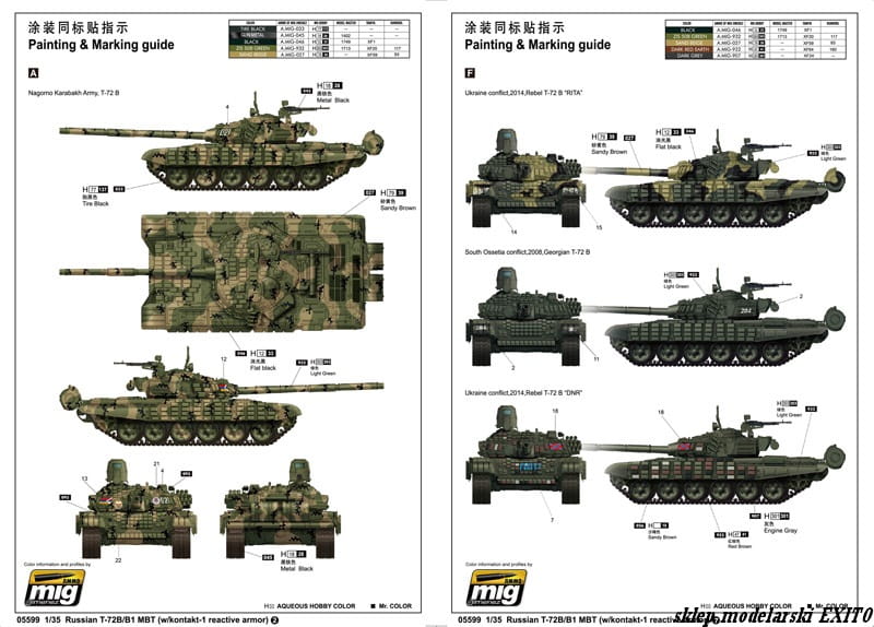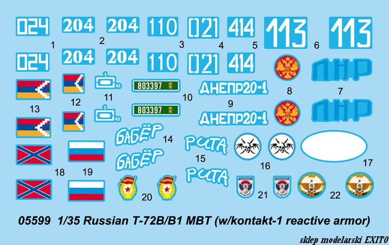 TRUMPETER 05599 - 1:35 Russian T-72B / B1 MBT ( w/ kontakt-1 reactive armor )