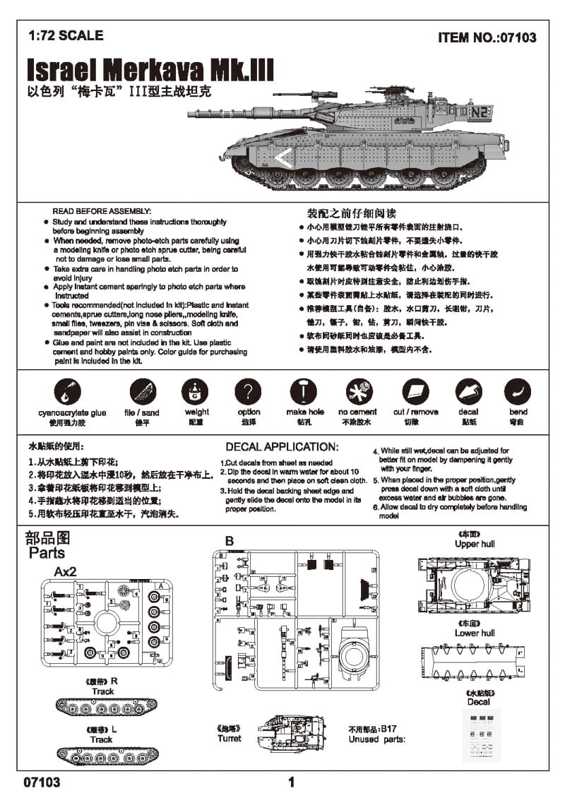 TRUMPETER 07103 - 1:72 Israel Merkava Mk.lll