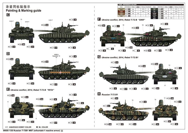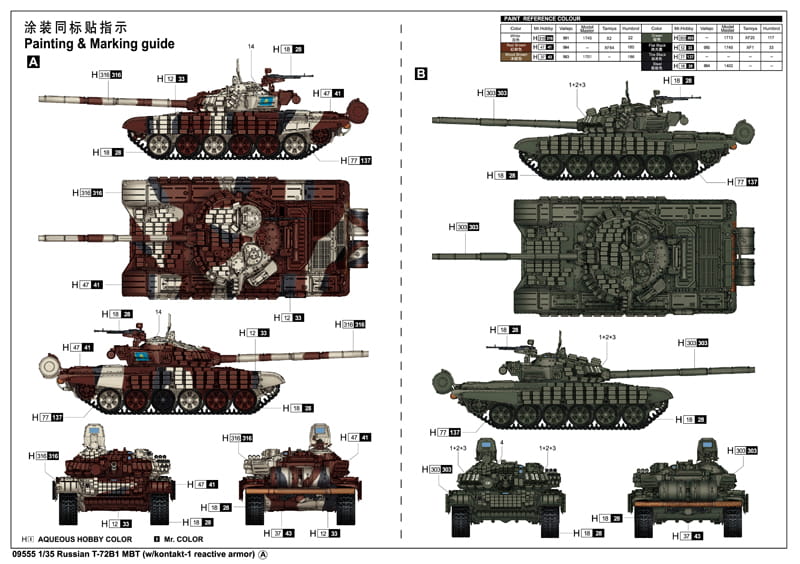 TRUMPETER 09555 - 1:35 Russian T-72B1 MBT (w/kontakt-1 reactive armor)