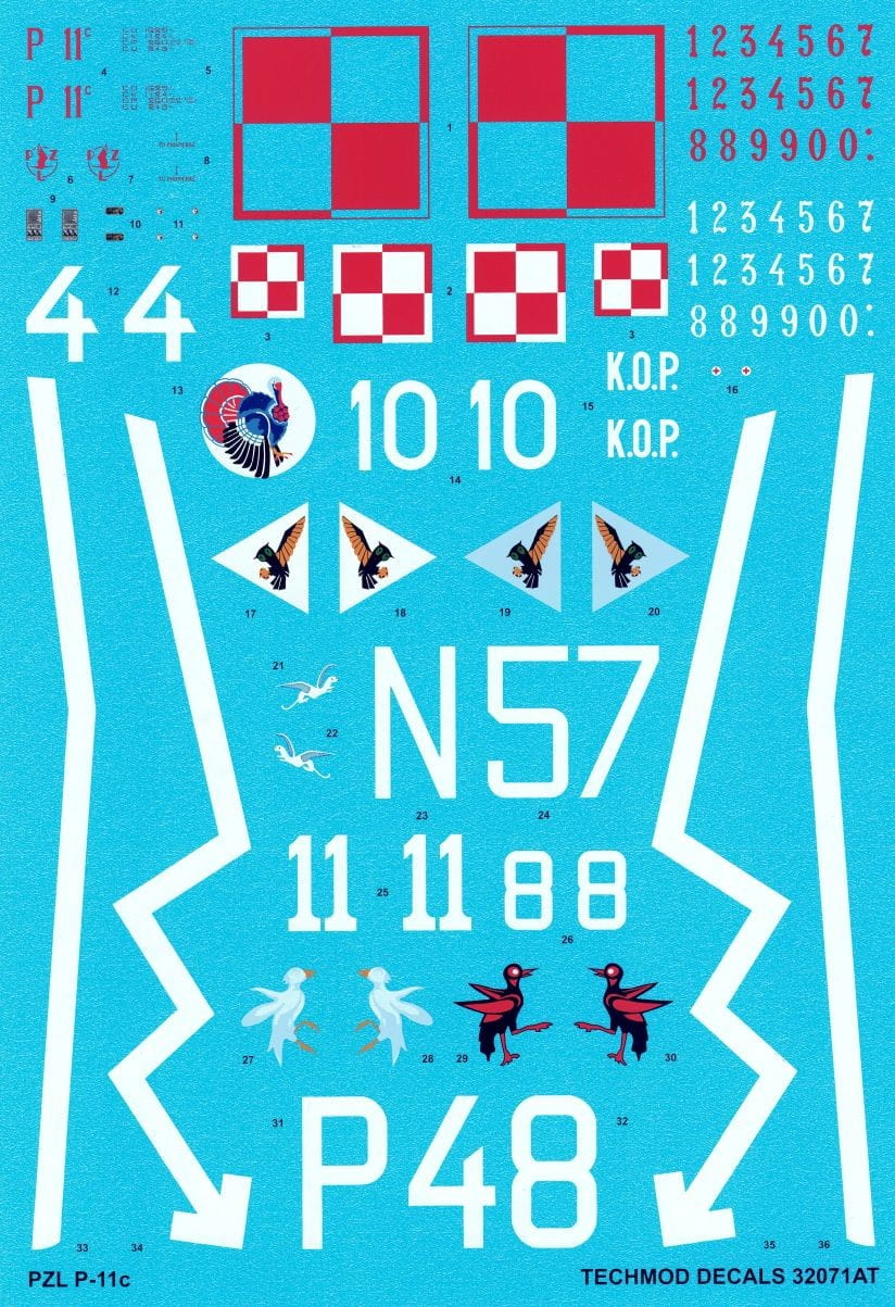 Kalkomanie do samolotu PZL P.11c w skali 1:32