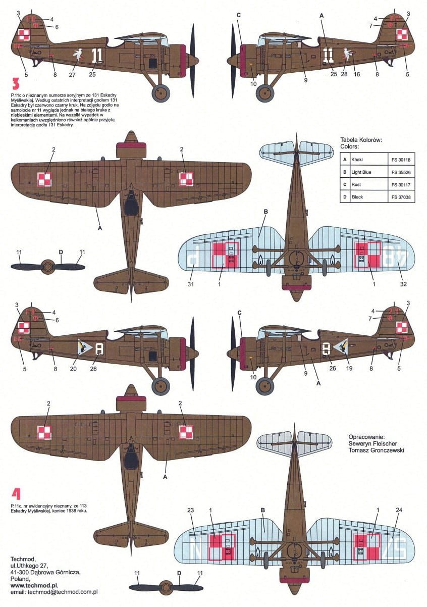 - Modele samolotu PZL P.11c w skali 1:32