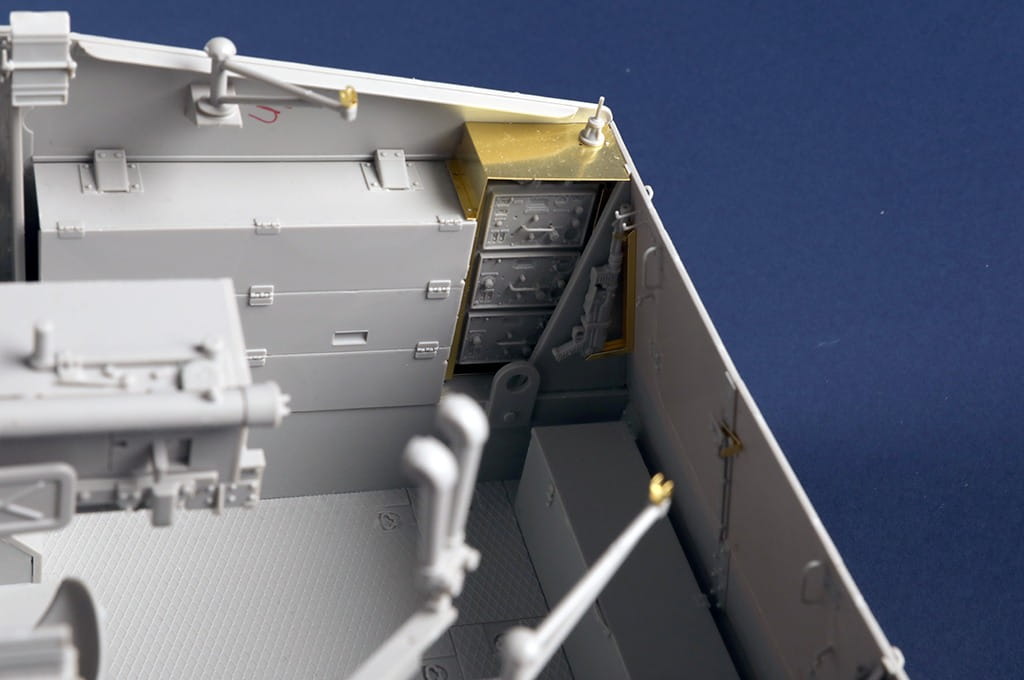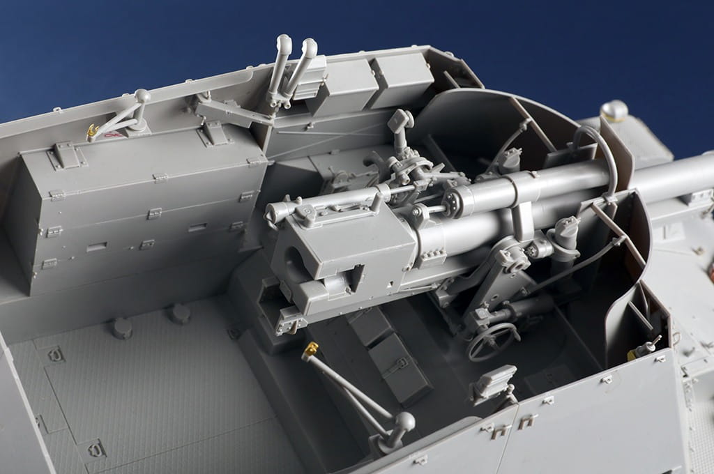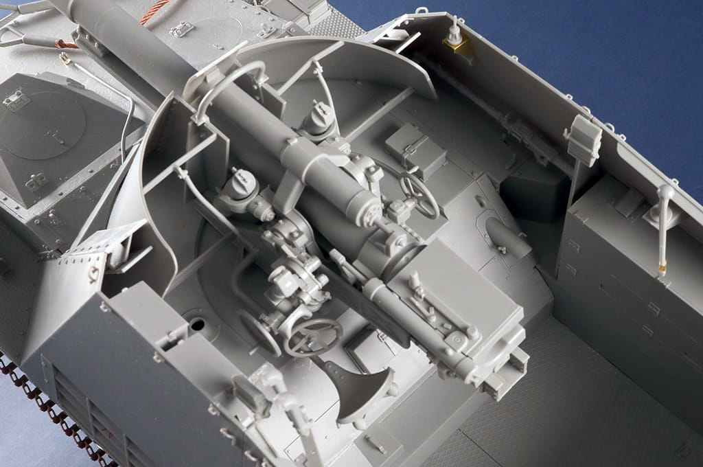 Model w dużej skali 1:16 składa się z wielu elementów umożliwiających wierne odwzorowanie podwozia, przedziału bojowego oraz armaty. Otwarta konstrukcja pojazdu pozwala wyeksponować detale wnętrza, co czyni zestaw atrakcyjną propozycją dla doświadczonych modelarzy.