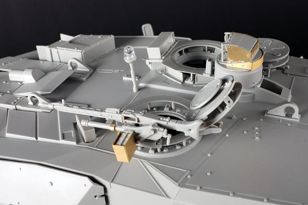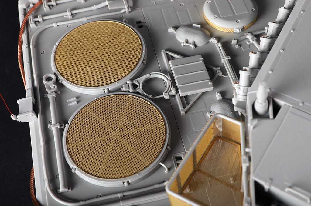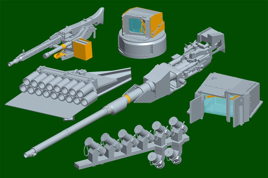 Zestaw oferuje ogromną liczbę detali – zawiera ruchome gąsienice, otwierane włazy, odwzorowane elementy optyczne i peryskopy, a także elementy fototrawione zwiększające realizm. Ze względu na skalę i poziom szczegółowości, model rekomendowany jest dla zaawansowanych modelarzy.