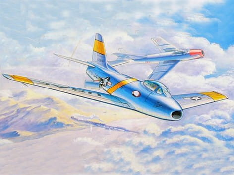 Model plastikowy do sklejania amerykańskiego samolotu myśliwskiego North American F-86 F-30 Sabre.