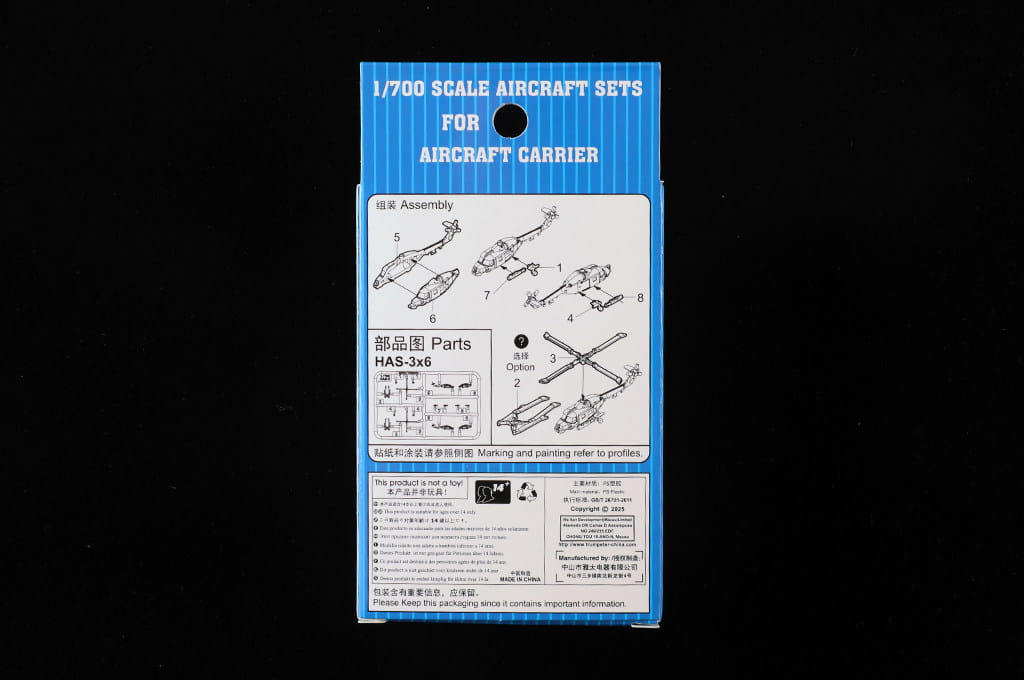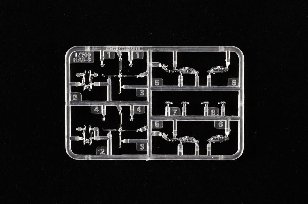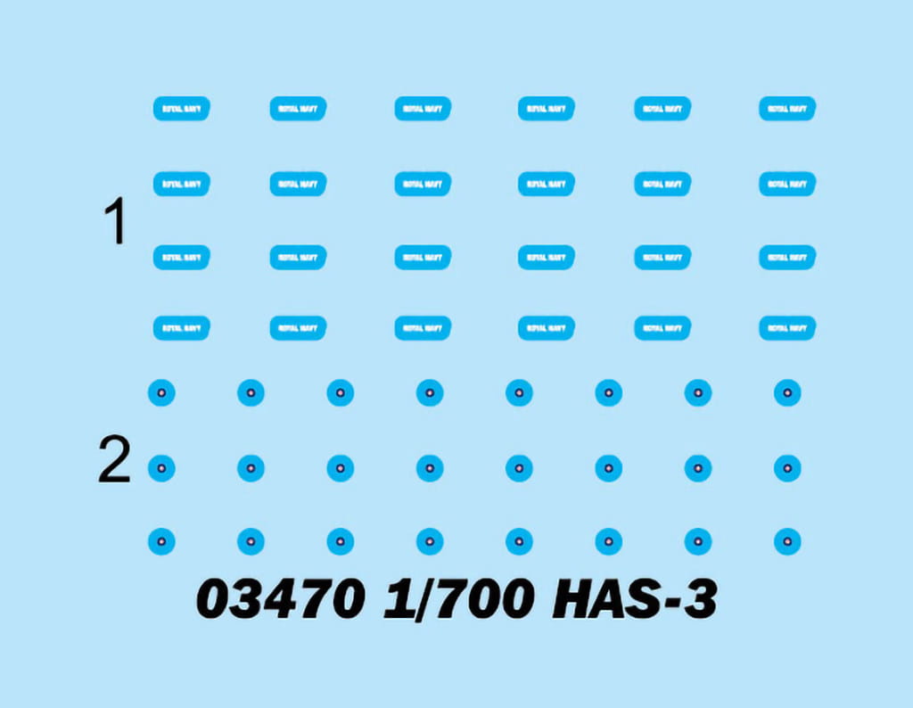 Trumpeter 03470 to zestaw zawierający 12 modeli śmigłowca HAS-3 w skali 1:700. Oznaczenie to odnosi się do morskiej wersji śmigłowca Westland Sea King używanej przez Royal Navy do zwalczania okrętów podwodnych (ZOP) oraz patrolowania akwenów morskich. Miniatury idealnie sprawdzą się jako wyposażenie modeli brytyjskich okrętów z okresu zimnej wojny.