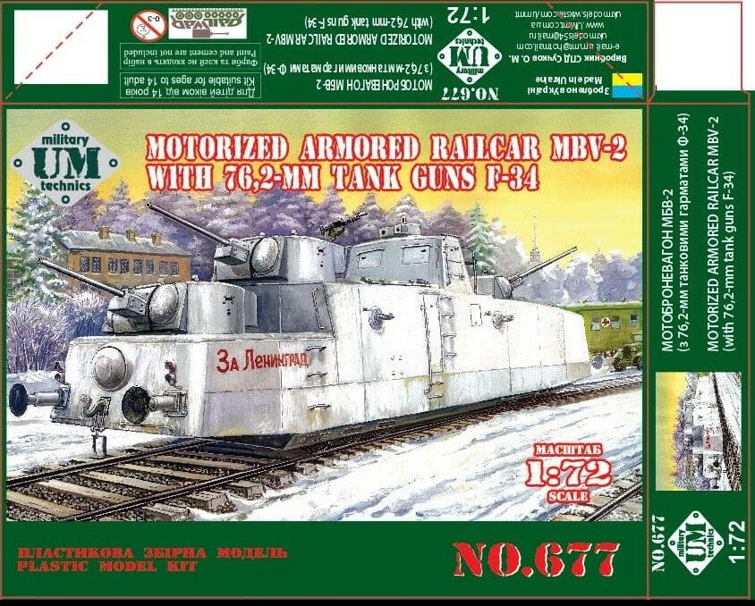 UNIMODELS UM-MT 677 - 1:72 Motorized Armored Railcar MBV-2 with 76.2-mm Tank Guns F-34