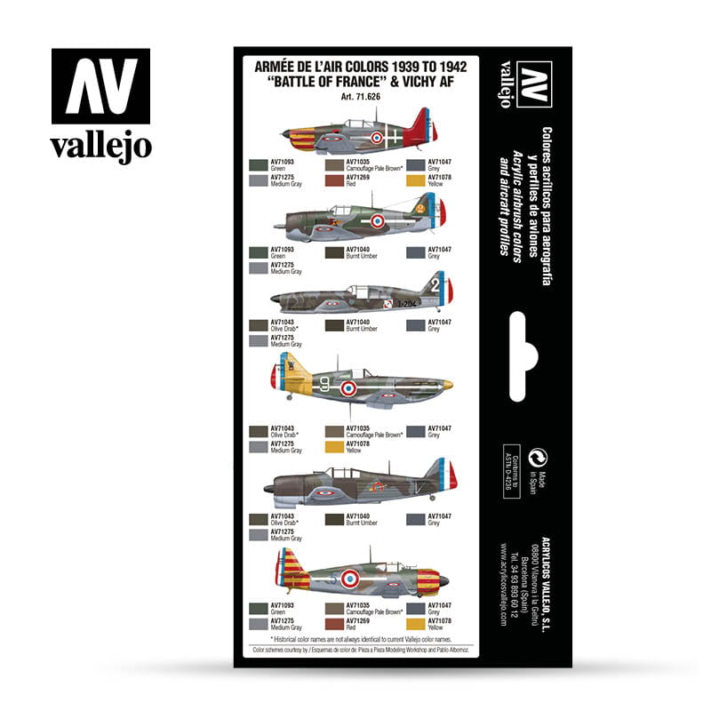 VALLEJO 71626 - Armée de l’Air colors 1939 to 1942 Battle of France & Vichy AF - Model Air Set