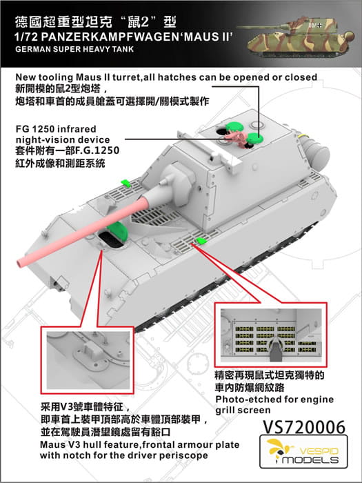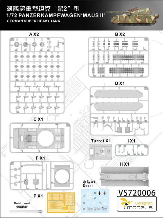 VESPID MODELS VS720006 - 1:72 Maus II German Super Heavy Tank