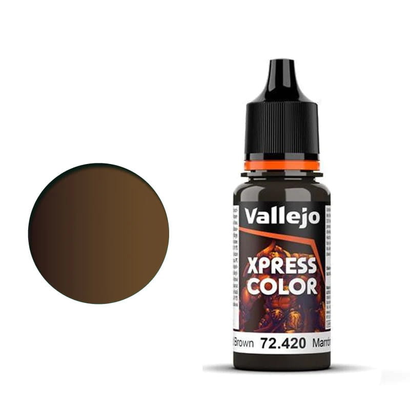 Seria farb Vallejo Xpress Color to wodorozcieńczalne farby akrylowe do malowania miniatur i figurek z gier bitewnych - kolor Wasteland Brown - Brąz Pustkowi.