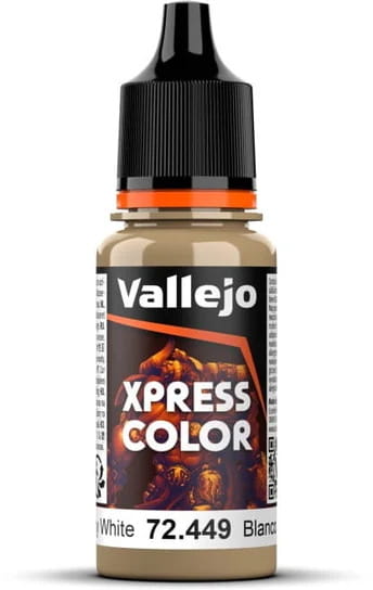Seria farb Vallejo Xpress Color to wodorozcieńczalne farby akrylowe do malowania miniatur i figurek z gier bitewnych - kolor Mummy White - Biała mumia.
