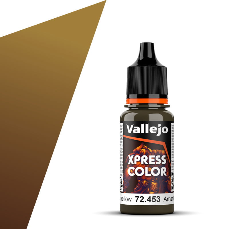 Seria farb Vallejo Xpress Color to wodorozcieńczalne farby akrylowe do malowania miniatur i figurek z gier bitewnych - kolor Military Yellow - Żółty wojskowy.