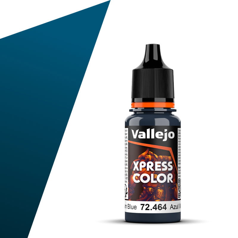 Seria farb Vallejo Xpress Color to wodorozcieńczalne farby akrylowe do malowania miniatur i figurek z gier bitewnych - kolor Wagram Blue - Niebieski napoleoński.