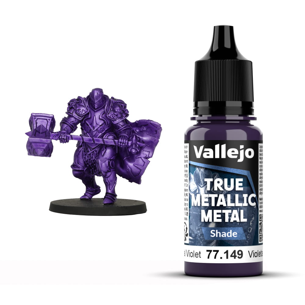 Vallejo 77149 – Celestial Violet Shade to akrylowa farba typu SHADE z serii True Metallic Metal, stworzona do cieniowania metalicznych powierzchni w chłodnych odcieniach niebieskiego i fioletu. Jest idealnym uzupełnieniem kolorów BASE i LIGHT takich jak Celestial Violet, Ultramarine Blue, Amethyst Purple oraz Sapphire Blue.