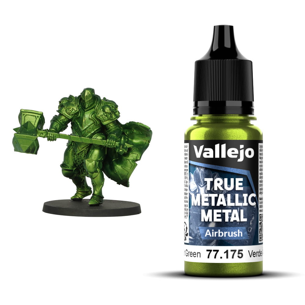 Vallejo 77175 – Amber Green Airbrush to metaliczna farba akrylowa z serii True Metallic Metal, zoptymalizowana pod natrysk aerografem. Jej wyjątkowy odcień łączy zieleń z bursztynowo-złotym połyskiem, nadając modelom elegancki, organiczny lub magiczny charakter. To doskonały wybór do projektów fantasy, sci-fi, steampunk oraz modeli technologicznych.