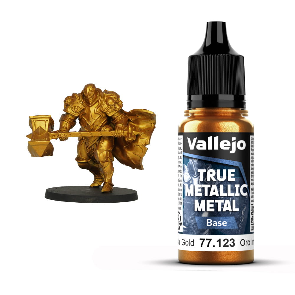 Vallejo 77252 – Imperial Gold Set to kompleksowy zestaw czterech farb akrylowych z serii True Metallic Metal (TMM), stworzony z myślą o realistycznym malowaniu bogatych, pełnych blasku złotych powierzchni. Imperial Gold to odcień wyróżniający się elegancją, wyrazistym połyskiem i głębią koloru, doskonale sprawdzający się w malowaniu pancerzy, ornamentów, rzeźbień, elementów fantasy oraz detali o ceremonialnym charakterze.