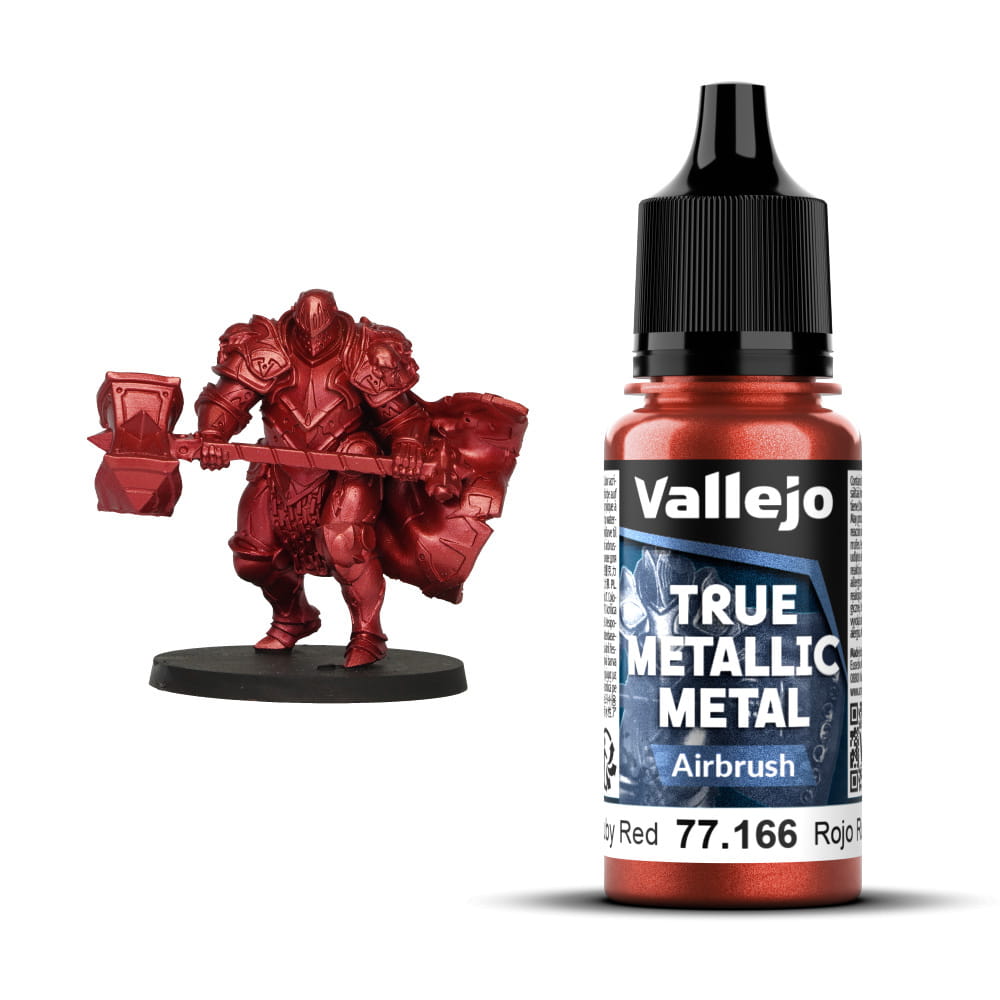 Vallejo 77254 – Ruby Red Set to zestaw czterech metalicznych farb akrylowych z serii True Metallic Metal (TMM), przygotowany z myślą o tworzeniu intensywnych, głębokich czerwonych powierzchni o wyrazistym metalicznym połysku. Odcień Ruby Red cechuje się dramatyczną, elegancką barwą, idealną do pancerzy, elementów fantasy, ozdobnych akcentów, urządzeń sci-fi oraz dekoracyjnych detali o niezwykle efektownym wykończeniu.
