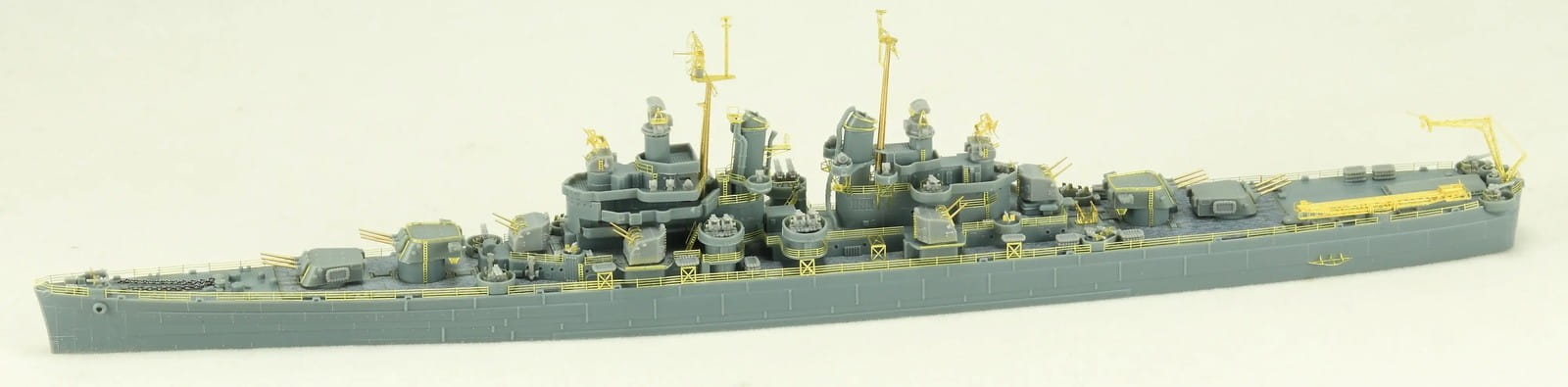 Model plastikowy do sklejania amerykańskiego krążownika lekkiego klasy Cleveland USS Cleveland CL-55 według stanu z 1945 roku.