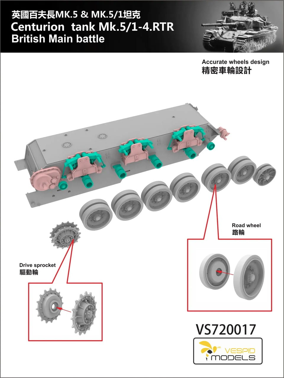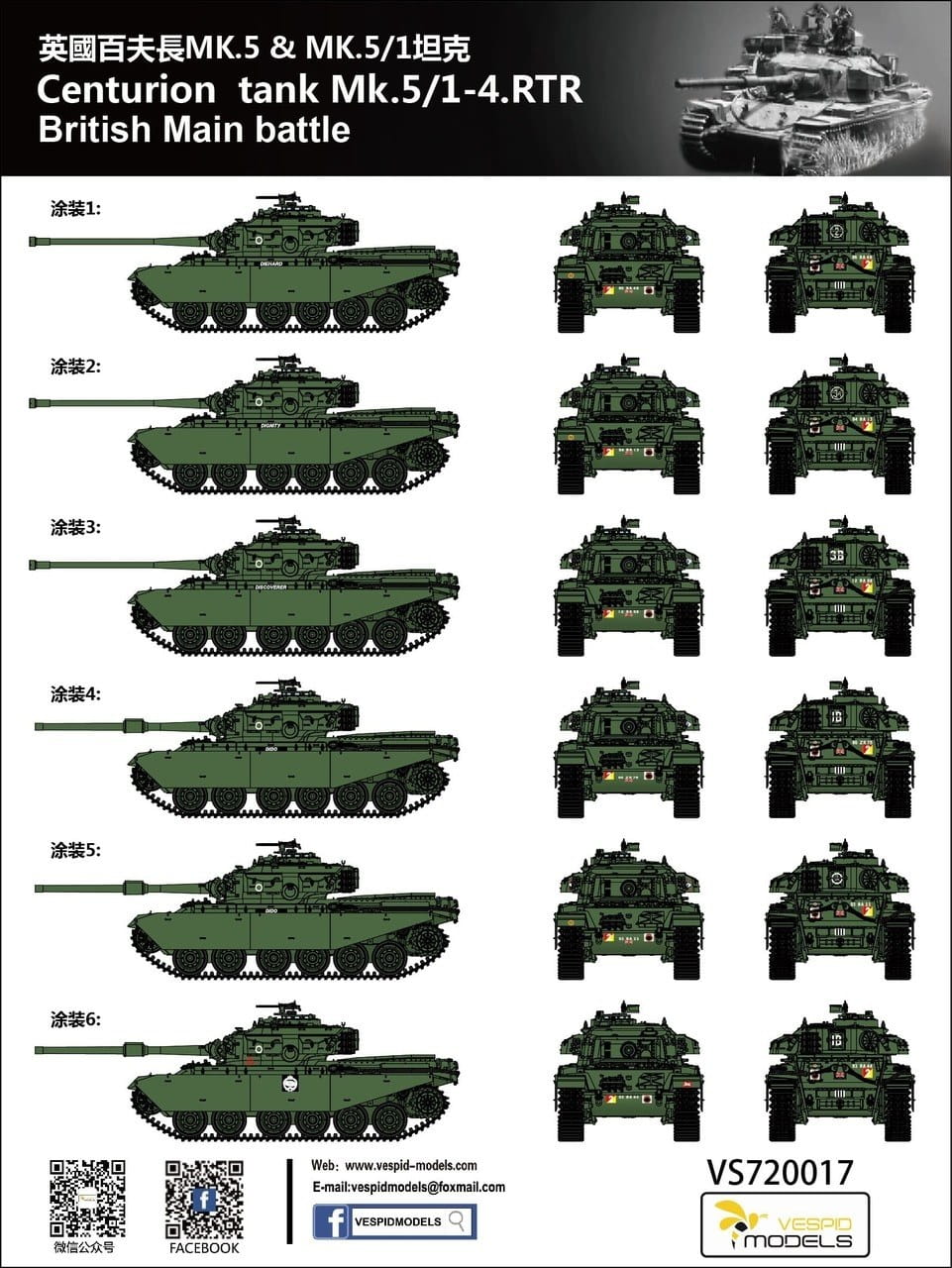 Vespid Models VS720017S - 1:72 Centurion Mk.5/1 - 4 RTR British Main Battle Tank - Deluxe Edition