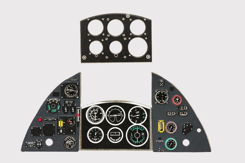 Wysokiej jakości, fototrawiona i kolorowana tablica przyrządów - zamiennik dla części znajdującej się w zestawie z modelem.