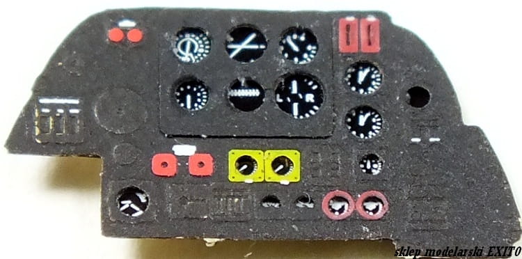 Wysokiej jakości, fototrawiona i kolorowana tablica przyrządów - zamiennik dla części znajdującej się w zestawie z modelem.