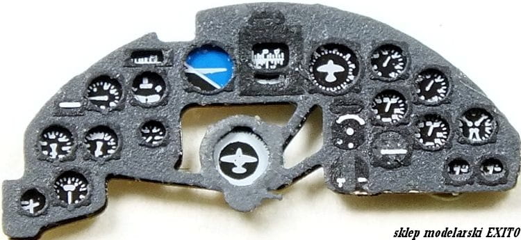 Wysokiej jakości, fototrawiona i kolorowana tablica przyrządów - zamiennik dla części znajdującej się w zestawie z modelem.