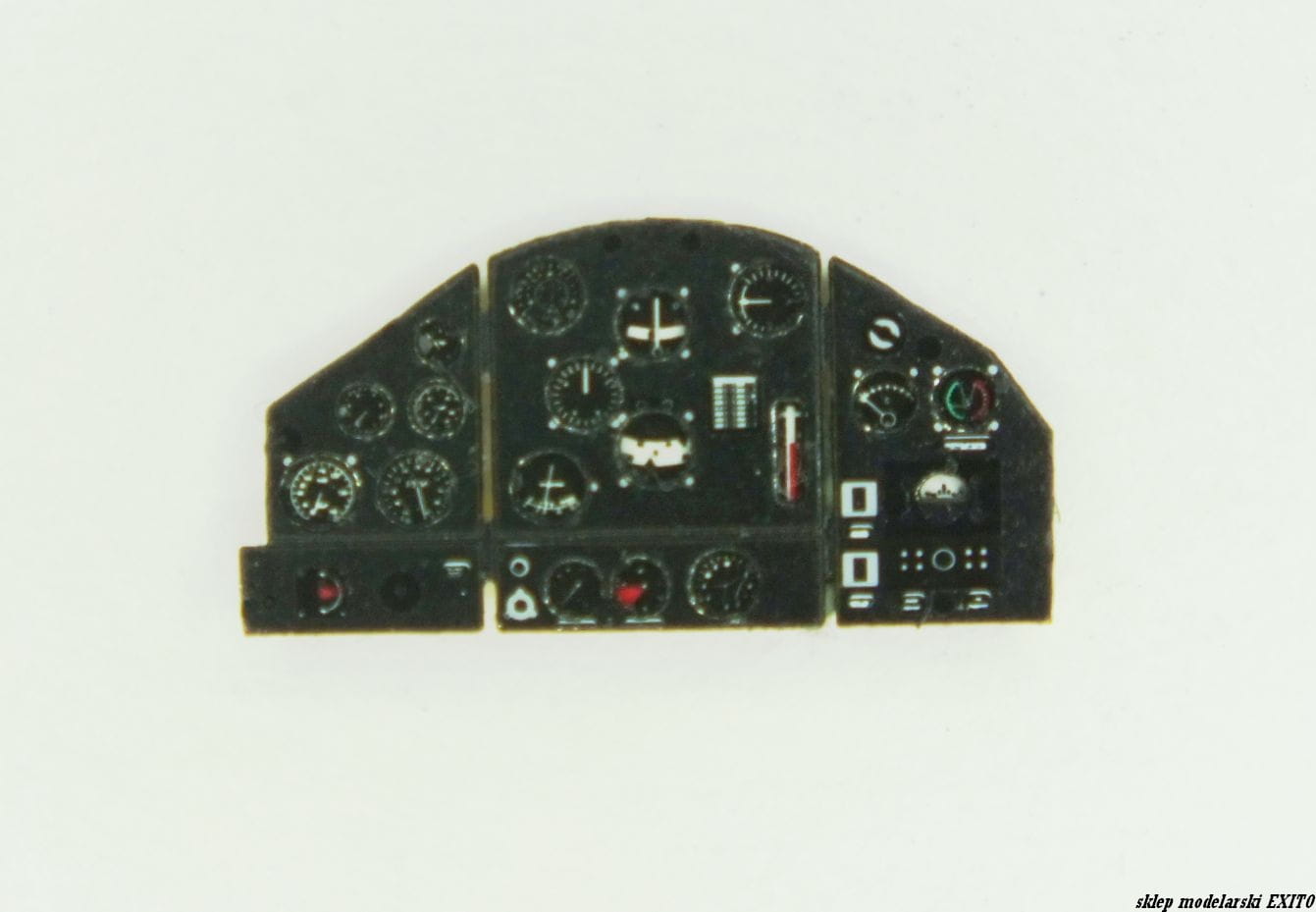 Wysokiej jakości, fototrawiona i kolorowana tablica przyrządów - zamiennik dla części znajdującej się w zestawie z modelem.