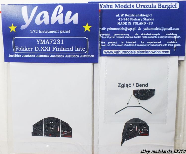 YAHU YMA7231 - 1:72 Fokker DXXI Finland late tablica przyrządów