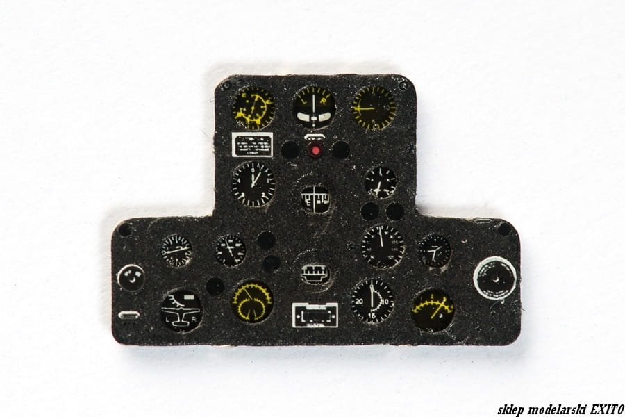 Wysokiej jakości, fototrawiona i kolorowana tablica przyrządów - zamiennik dla części znajdującej się w zestawie z modelem.