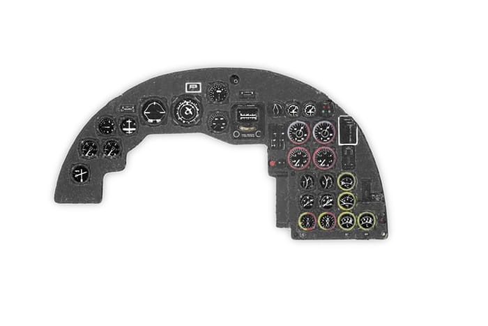 Wysokiej jakości, fototrawiona i kolorowana tablica przyrządów - zamiennik dla części znajdującej się w zestawie z modelem.