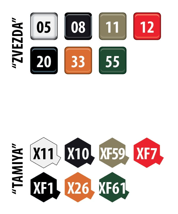 - zestaw farb według instrukcji lub dobrany według potrzeb z pomocą pracownika naszego sklepu modelarskiego