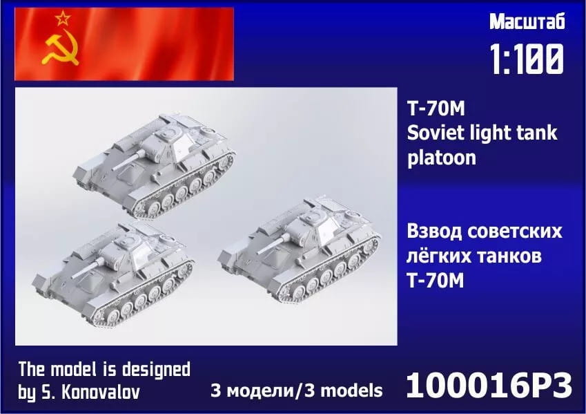 Zebrano 100-016P3 - 1:100 T-70M Platoon 3 pcs
