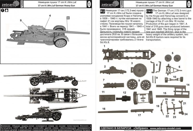 Zebrano 72060 przedstawia niemieckie działo ciężkie 17 cm K. Mrs. Lf, należące do klasy ciężkich moździerzy i haubic używanych przez Wehrmacht w czasie II wojny światowej. Broń tego typu była przeznaczona do niszczenia umocnień, prowadzenia ostrzału dalekiego zasięgu i wspierania piechoty w działaniach oblężniczych.