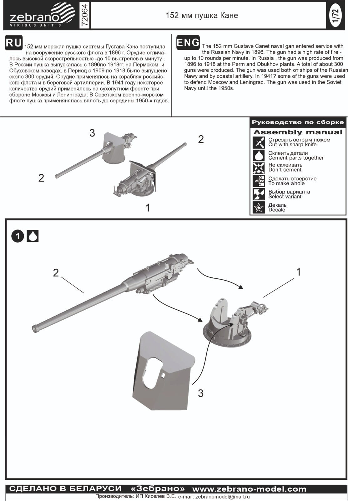Firma Zebrano oferuje wysokiej jakości model żywiczny przedstawiający rosyjską armatę morską Canet kalibru 152 mm, stosowaną w systemach obrony nadbrzeżnej od końca XIX wieku aż do połowy XX wieku. Działo to wykorzystywano w fortach i bateriach przybrzeżnych, a także na niektórych okrętach wojennych Imperium Rosyjskiego. Model doskonale nadaje się do budowy historycznych dioram lub jako unikatowy element kolekcji artylerii stałej.