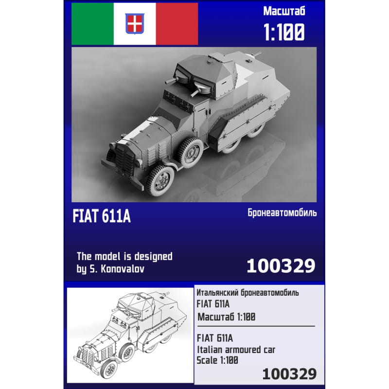 Zestaw Zebrano Z100-329 przedstawia włoski samochód pancerny Fiat 611A, będący wcześniejszą wersją pojazdu Fiat 611B. Konstrukcja ta była wykorzystywana przez armię włoską w latach 30. XX wieku, głównie w działaniach kolonialnych oraz jako wsparcie jednostek rozpoznawczych.