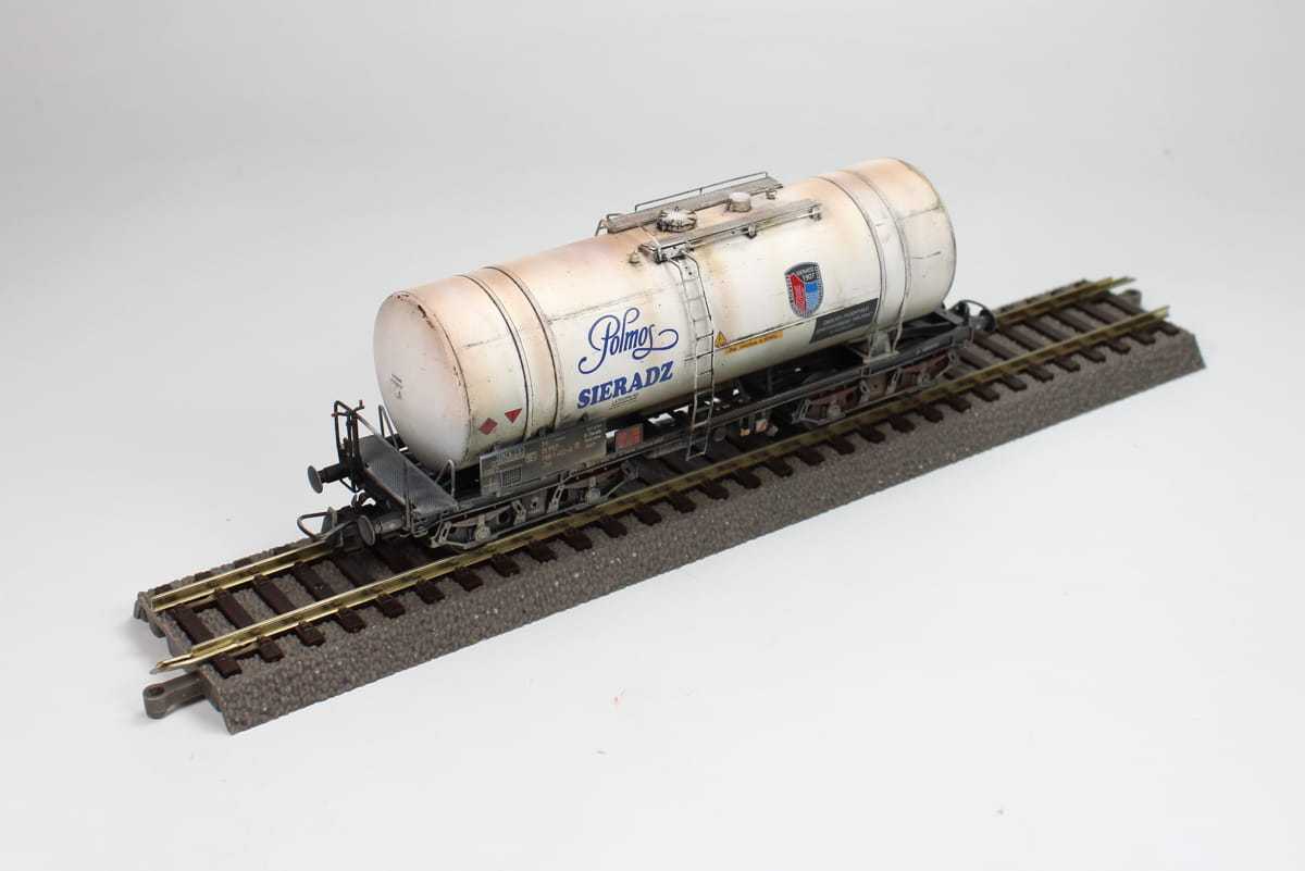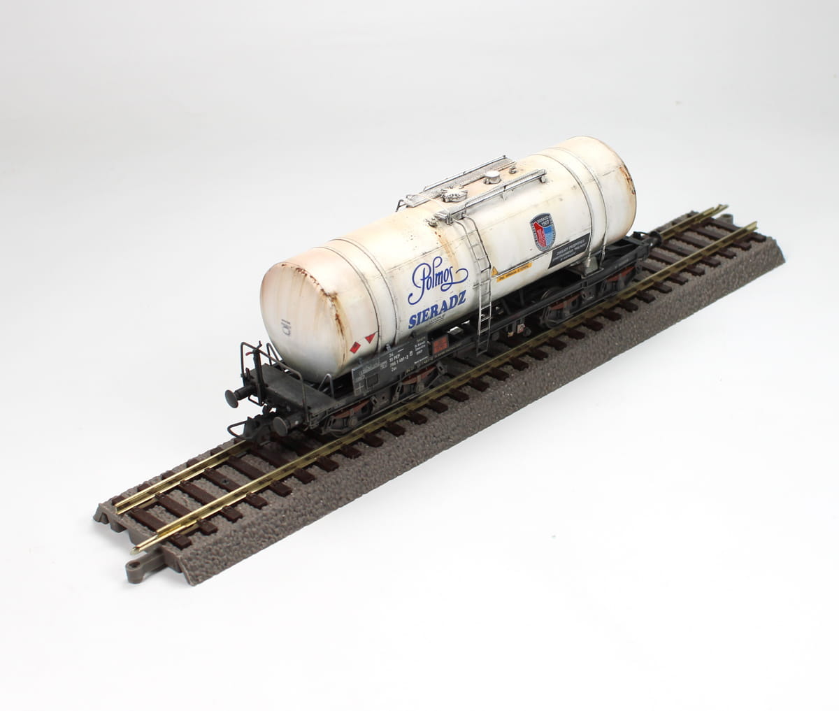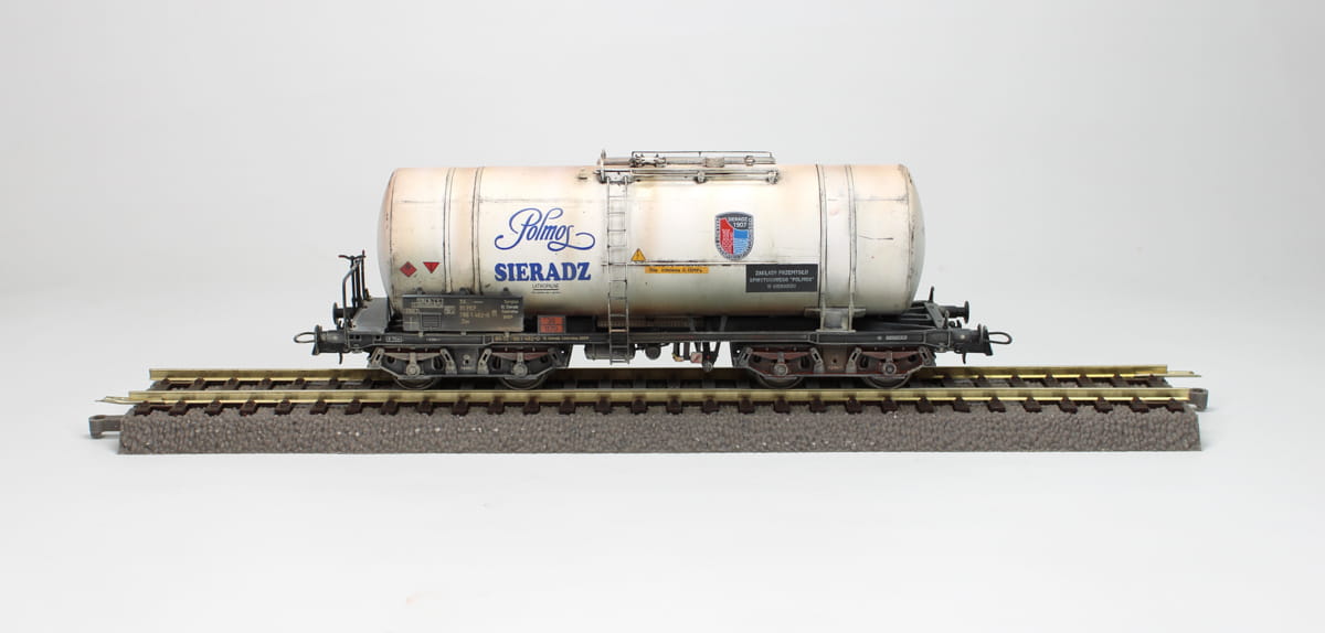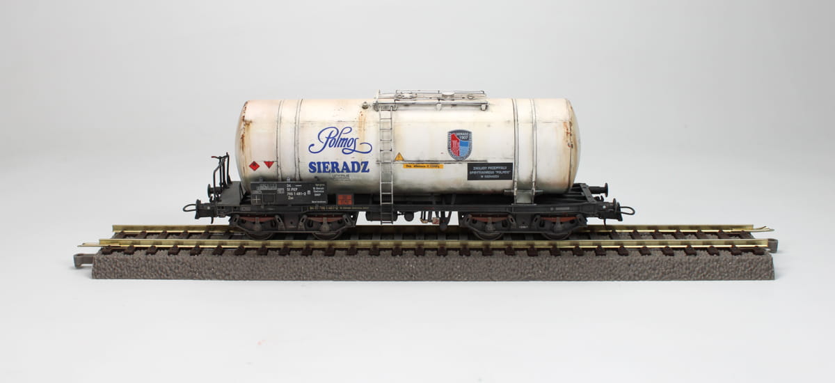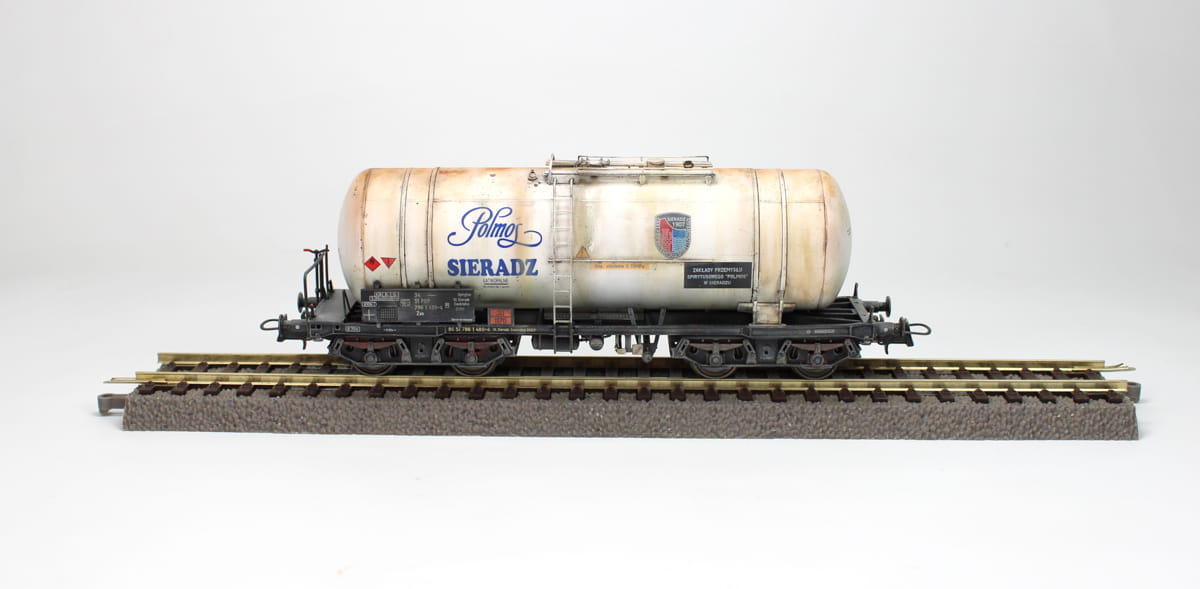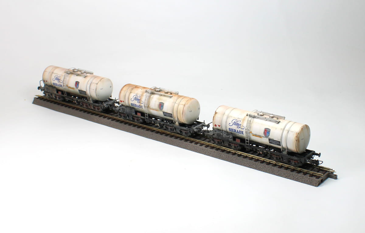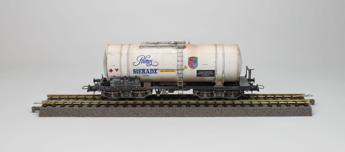 Wykonane z elementów plastikowych i metalowych modele wagonów do kolejek elektrycznych w skali H0 czyli 1/87. Są miniaturami wagonów towarowych cystern typu 406Rb. Malowanie przedstawia wagony używane przez PKP - Polskie Koleje Państwowe w trakcie epoki V przypadającej na lata 1990 - 2007.
