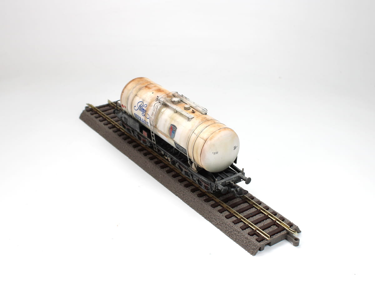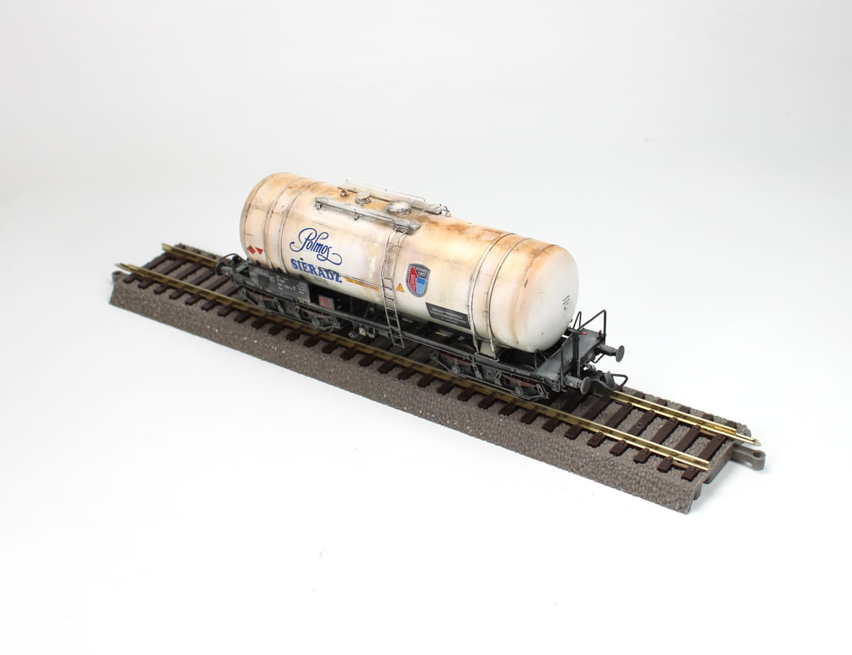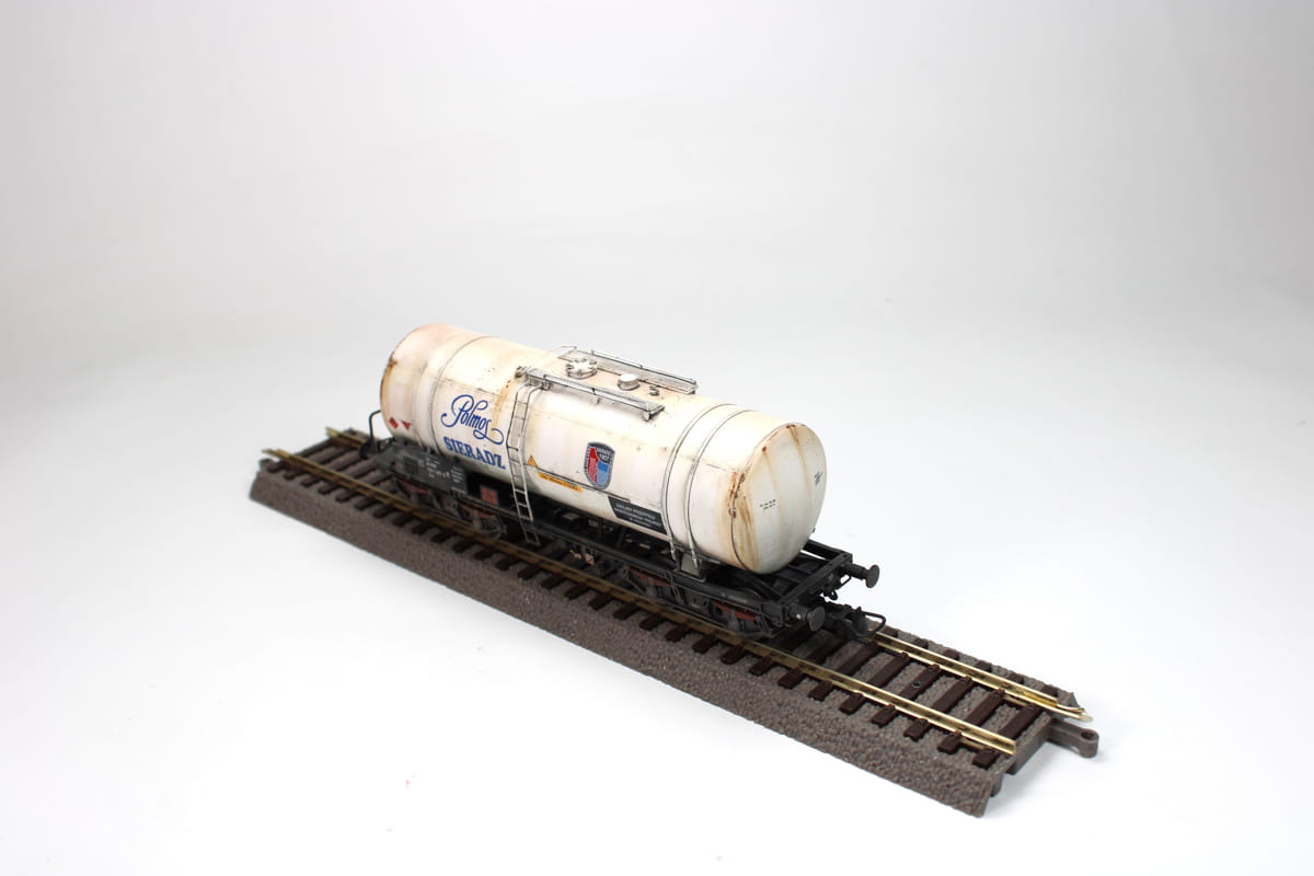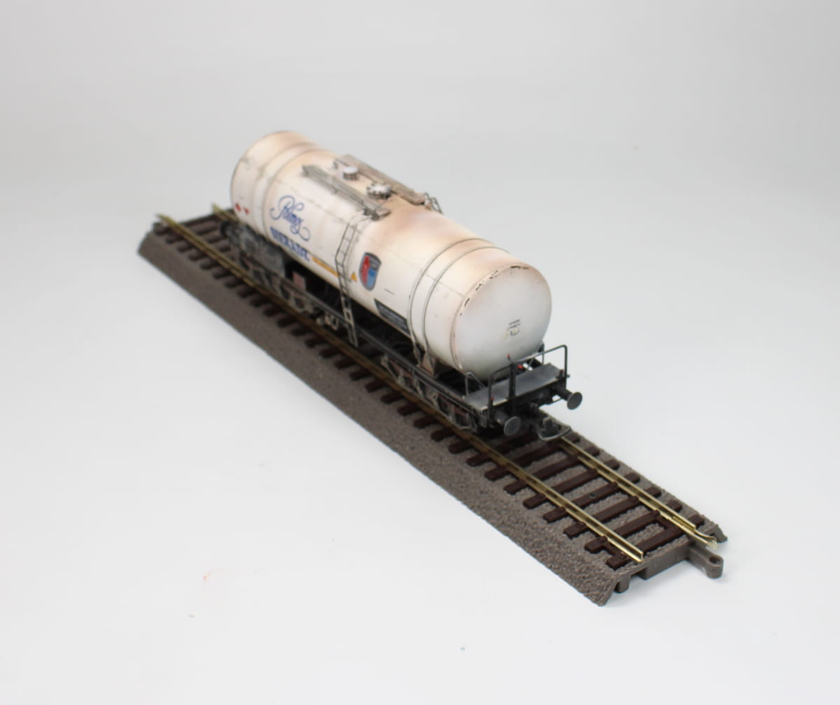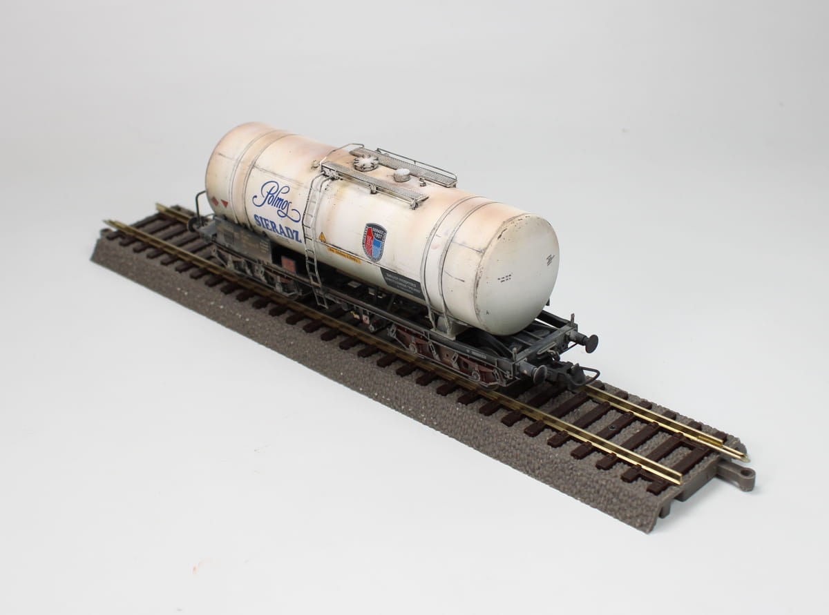 Wykonane z elementów plastikowych i metalowych modele wagonów do kolejek elektrycznych w skali H0 czyli 1/87. Są miniaturami wagonów towarowych cystern typu 406Rb. Malowanie przedstawia wagony używane przez PKP - Polskie Koleje Państwowe w trakcie epoki V przypadającej na lata 1990 - 2007.