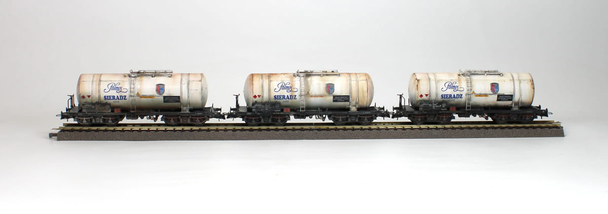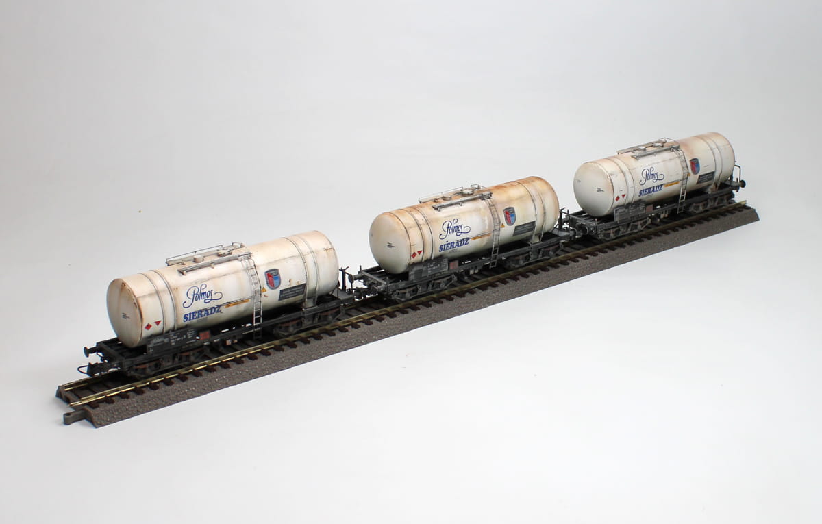 Zestaw 3 wagonów cystern typu 406Rb PKP Polmos Sieradz ep. V Robo 102510 H0 + patyna / weathering