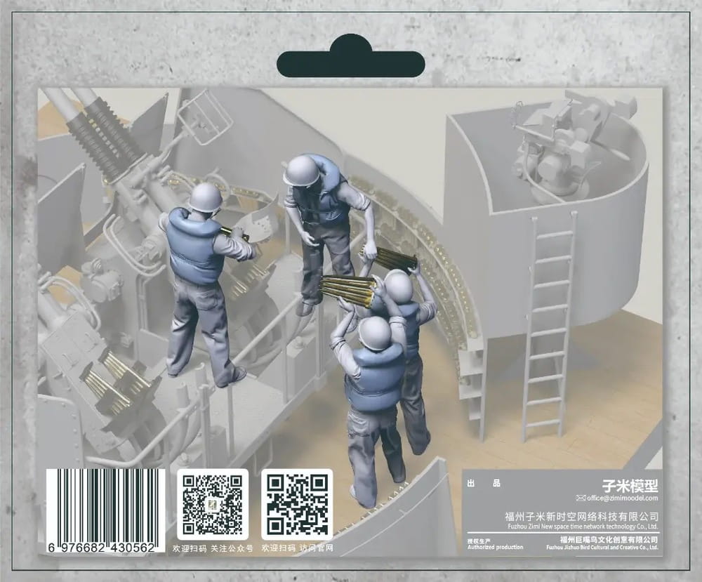 Zimi Model Toucan 3D003J w skali 1:35 to zestaw realistycznych figurek przedstawiających obsługę działka przeciwlotniczego 40 mm Bofors w służbie Marynarki Wojennej Stanów Zjednoczonych. Marynarze ukazani są w typowych pozach bojowych – obsługujących czterolufowe działko Bofors w trakcie walki z celami powietrznymi. Wszyscy żołnierze wyposażeni są w charakterystyczne kamizelki ratunkowe typu kapok, powszechnie używane na pokładach amerykańskich okrętów podczas II wojny światowej.