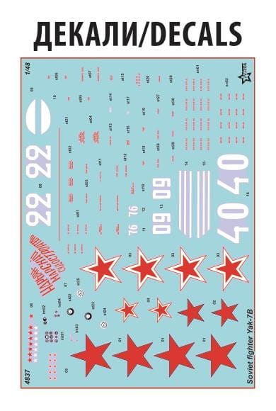 Zvezda 4837 to model radzieckiego samolotu myśliwskiego Jak-7B w późnej wersji produkcyjnej, używanego przez siły powietrzne ZSRR w drugiej połowie II wojny światowej. Samolot powstał jako rozwinięcie wersji szkolno-treningowej Jak-7UTI, przystosowane do roli bojowej. Wersja „B” wyposażona została w mocniejszy silnik i uzbrojenie, dzięki czemu stała się jednym z podstawowych myśliwców frontowych Armii Czerwonej w latach 1942–1943.